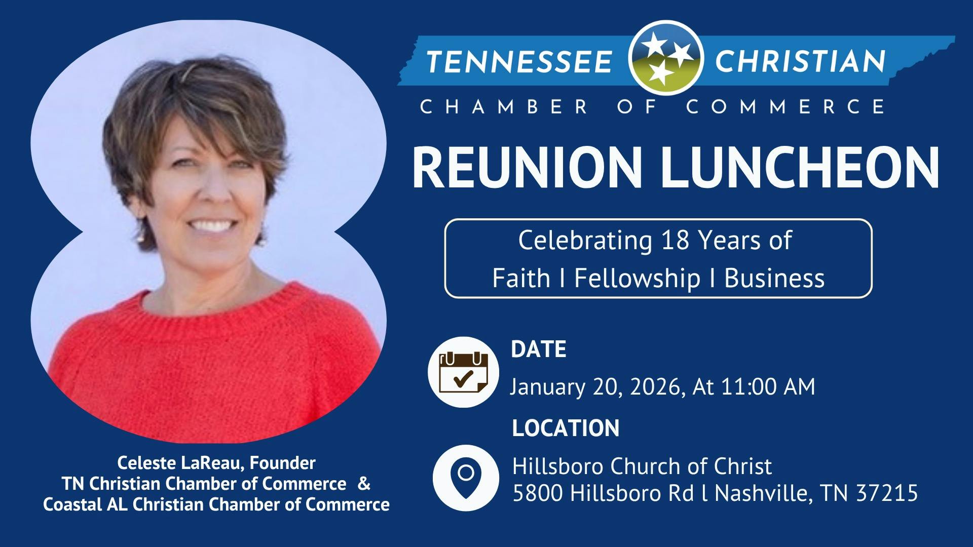 Tenessee Christian Chamber Of Commerce Monthly Luncheons meet on the THIRD TUESDAY of each month. Weekly Power Hour meetings and luncheons will be ongoing, and you can view those times and locations in our event calendar here on the website and our app. The links are below. Download the app, add it to your home screen, and subscribe for updates!
